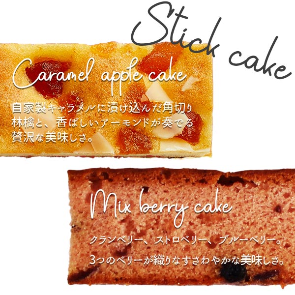 内容:オレンジケーキ 1個/ミックスベリーケーキ 1個/キャラメルアップルケーキ 1個/抹茶ショコラケーキ 1個/ニューヨークブラウニー 1個/ショコラクッキー 1個/ストロベリークッキー 2個/アールグレイクッキー 1個/レモンクッキー 2個