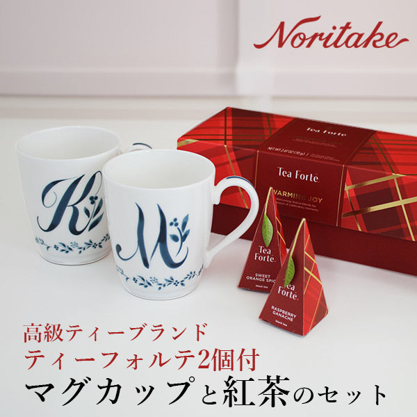 上品なノリタケのアルファベットマグカップとコーシャ認定オーガニックのティーフォルテとの母の日にぴったりのセットです。母の日以外にも記念日やプレゼントに最適です。