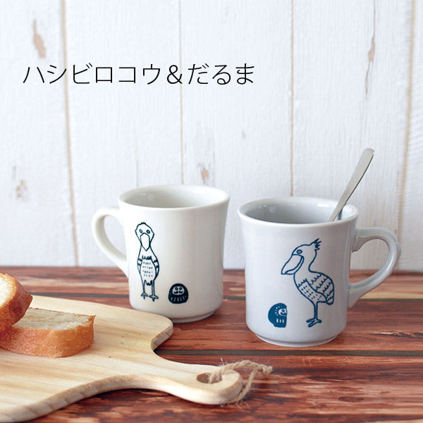 マグカップ だるまとハシビロコウ かわいい 癒やされる 美濃焼 食器 マグ 2色から選べます バレンタイン