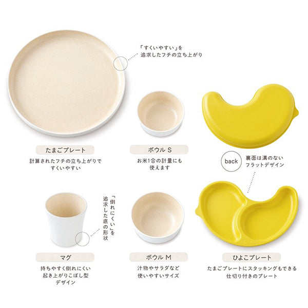 ボウルS、ボウルM、たまごプレート、マグ、ひよこプレート