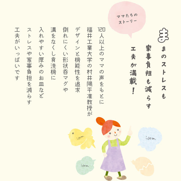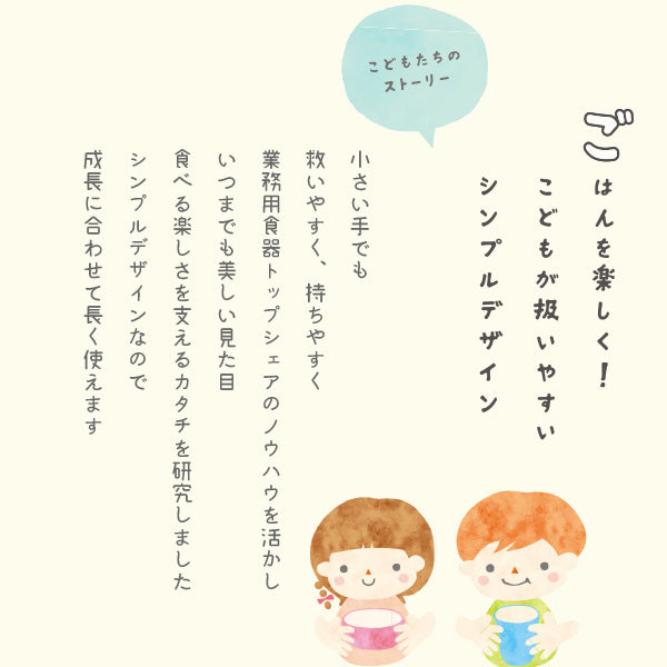 割れにくい素材と、使いやすい形状にこだわり、スムーズな食事をサポートし、片付けの手間も軽減。