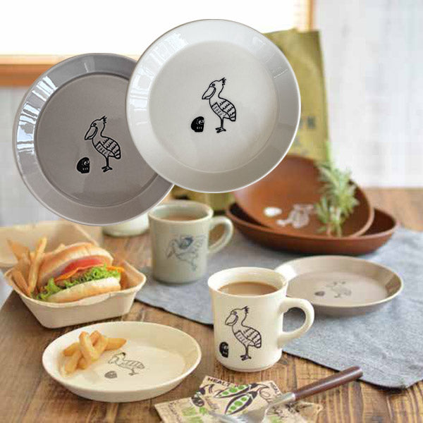 ナチュラルプレート(S)だるまとハシビロコウ かわいい 癒やされる 美濃焼 食器 2色から選べます