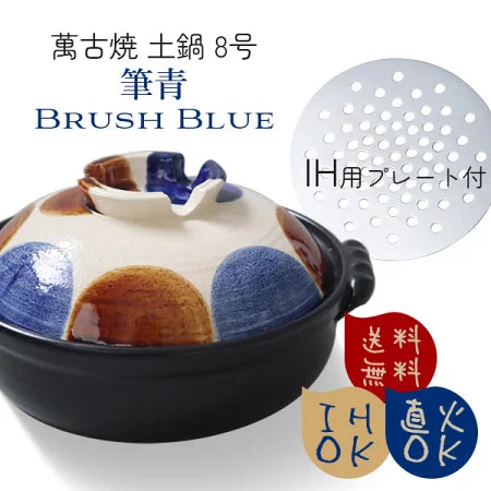 万古焼 IH 直火 土鍋 点打 8号土鍋 (2~3人用) IH用プレート付 〈7-2066〉 日本製 卓上鍋