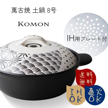 万古焼 IH 直火 土鍋 komon 8号土鍋 (2~3人用) IH用プレート付 (イングレーズ) 〈7-2087〉 日本製 卓上鍋
